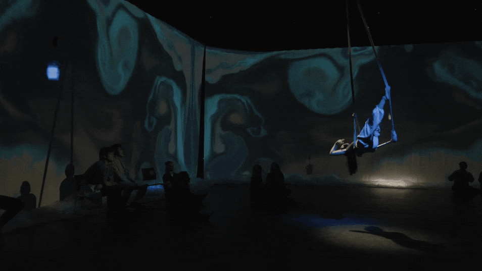 interactive, immersive aerial performance with motion capture and generative visuals + sound